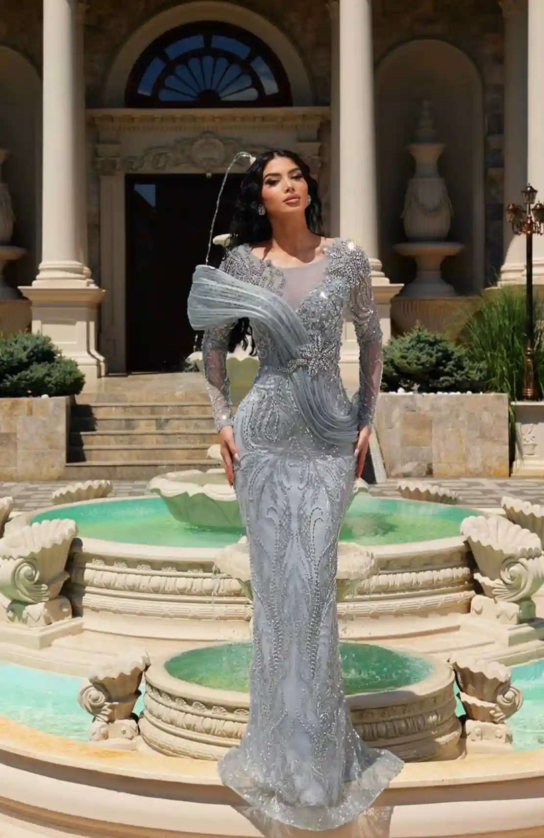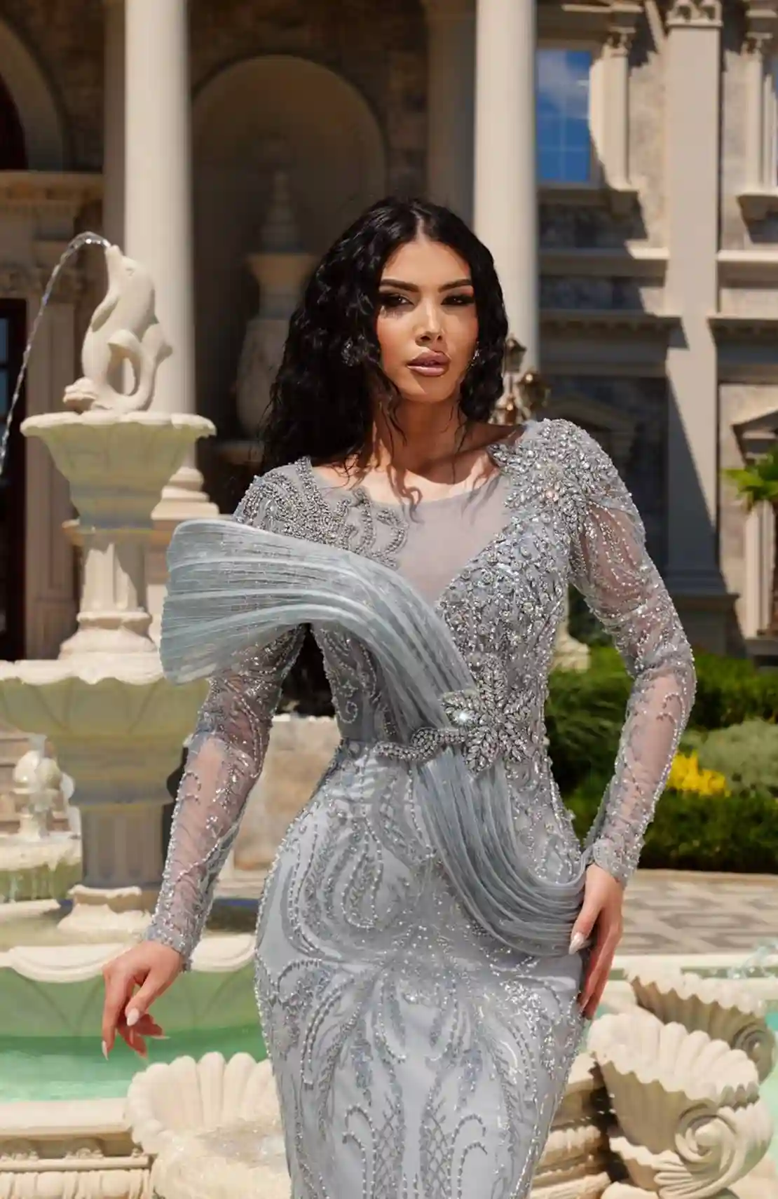 body flattering design with sleeves that add touch of sophistication and luxury.